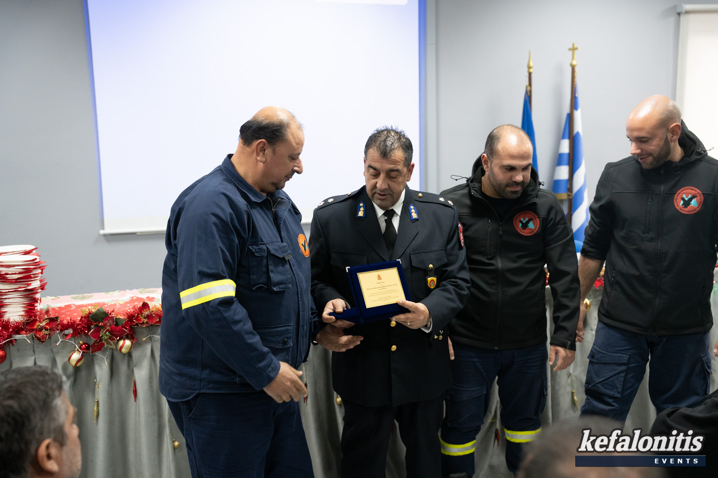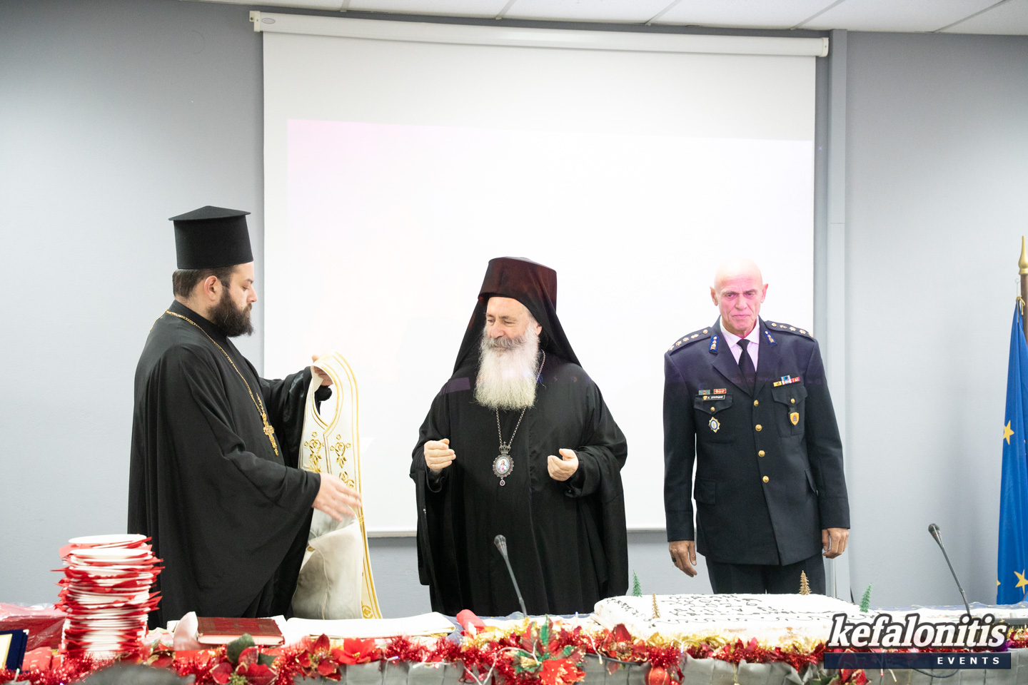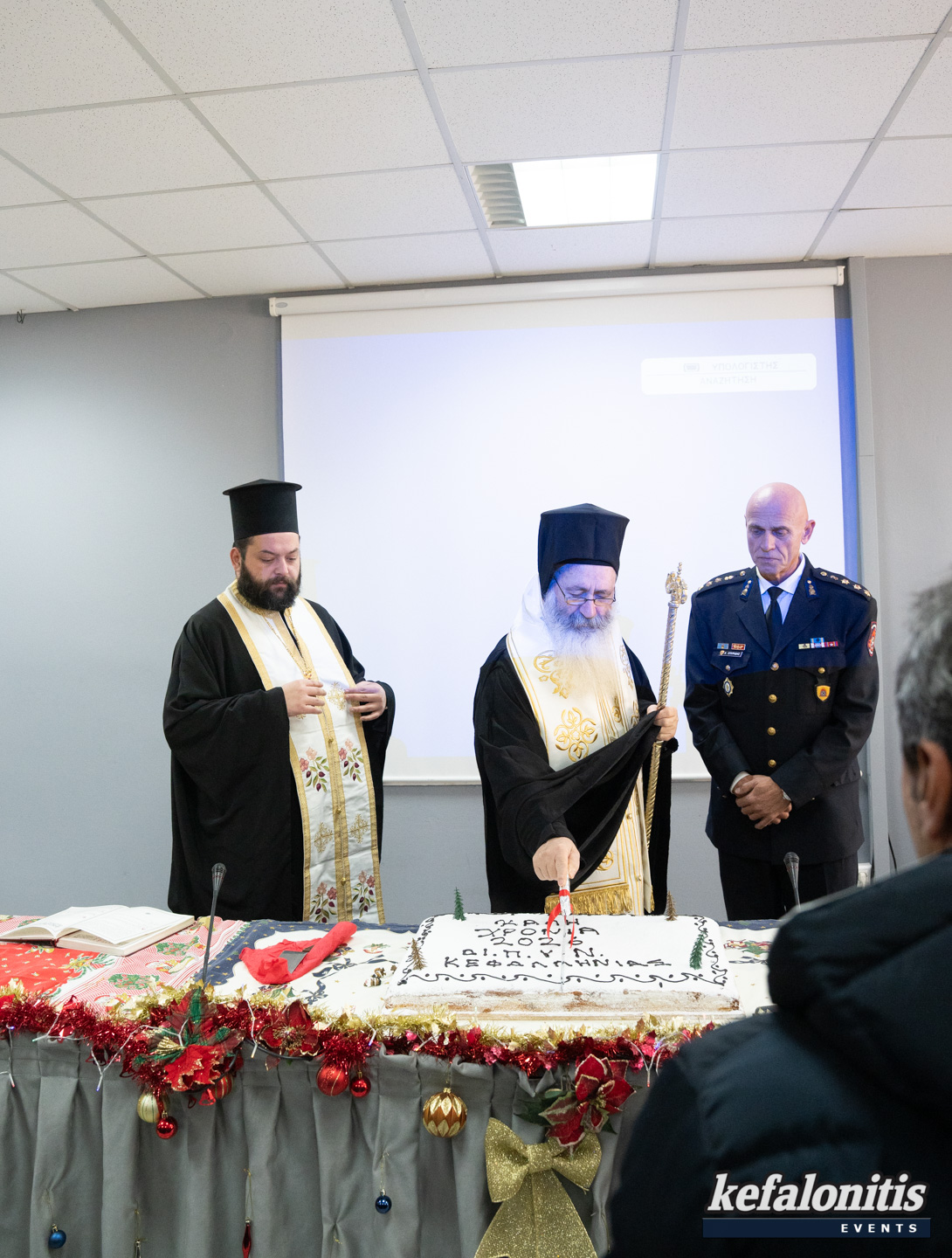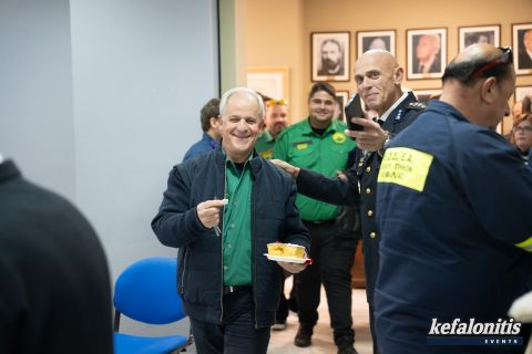 Πραγματοποιήθηκε σήμερα το πρωί η κοπή της πρωτοχρονιάτικης πίτας της ΔΙ.Π.Υ.Ν. Κεφαλληνίας με την παρουσία όλων των μελών της Πυροσβεστικής ,του Μητροπολίτη Κεφαλληνίας κ.κ. Δημήτριου και εκπροσώπους της πολιτικής ηγεσίας του τόπου.
