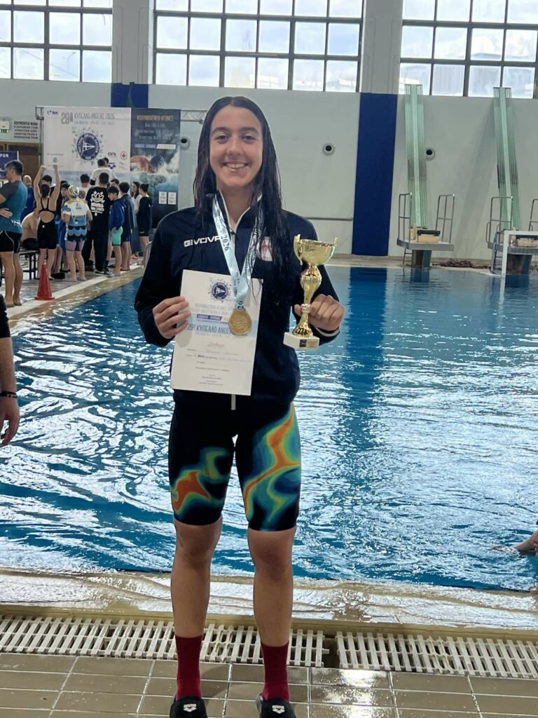 κατηγορίες κέρδισε το κύπελλο για την καλύτερη επίδοση στο αγώνισμα, 1η στα 200μ. ελεύθερο με χρόνο 02.13.32, 1η στα 50μ. ελεύθερο με χρόνο 28.52 και 1η στα 50μ. πεταλούδα με χρόνο 30.02(όλοι οι χρόνοι είναι ΟΡΙΑ ΠΑΝΕΛΛΗΝΙΩΝ ΑΓΩΝΩΝ).