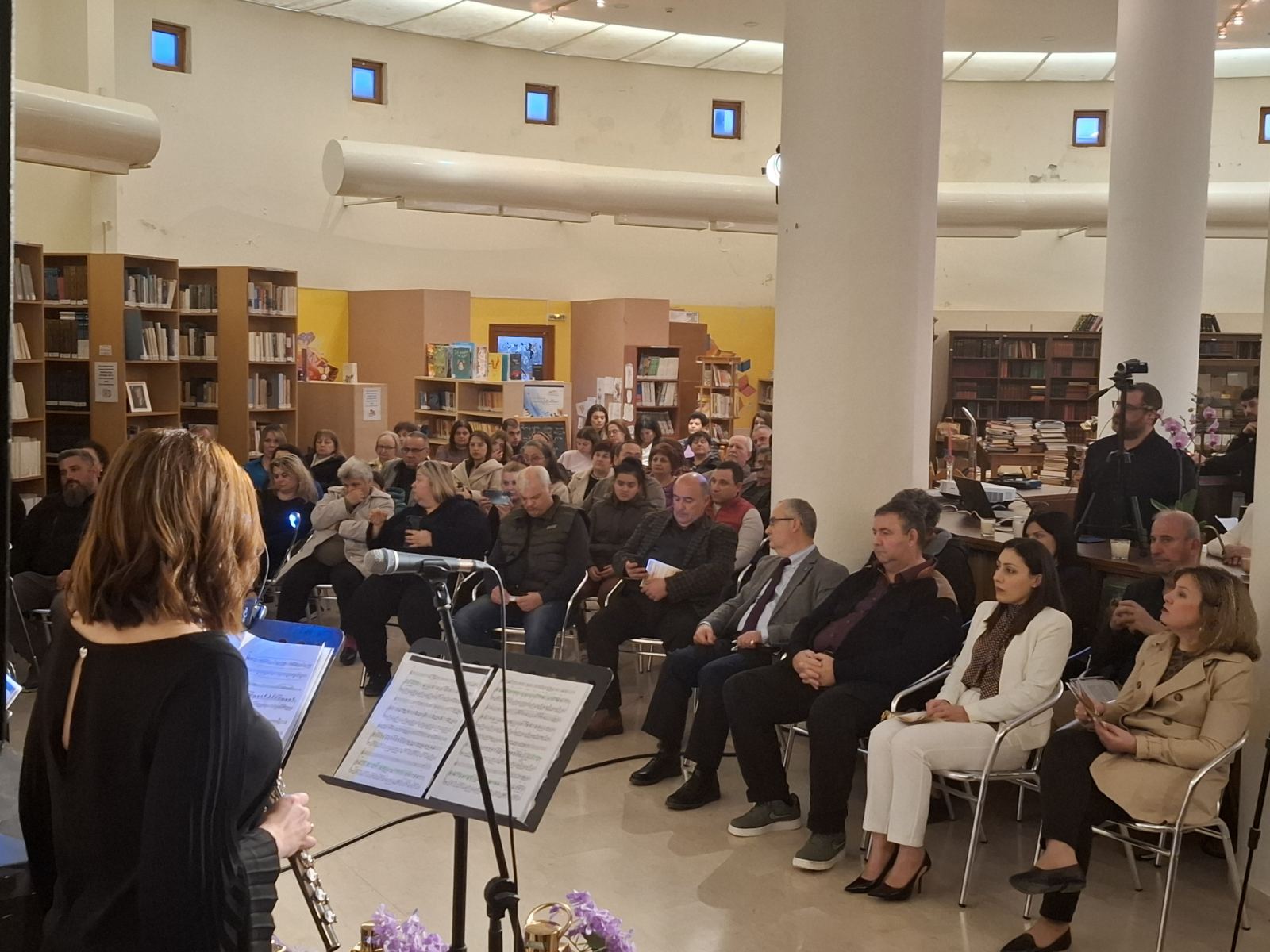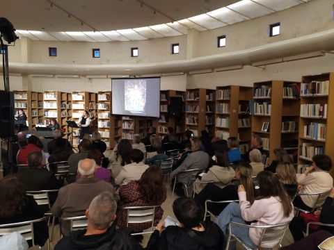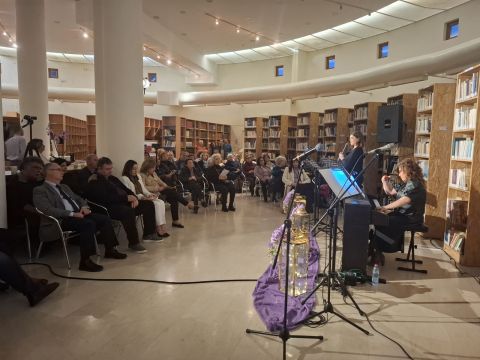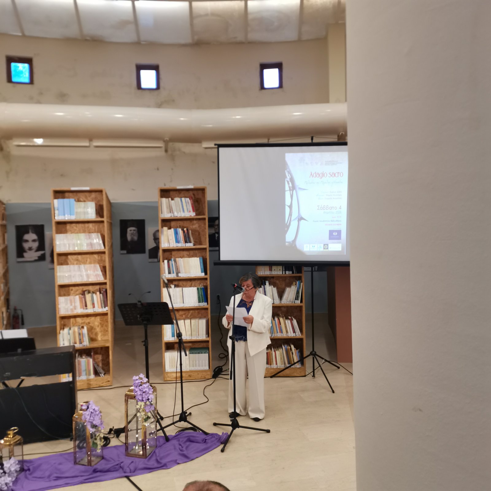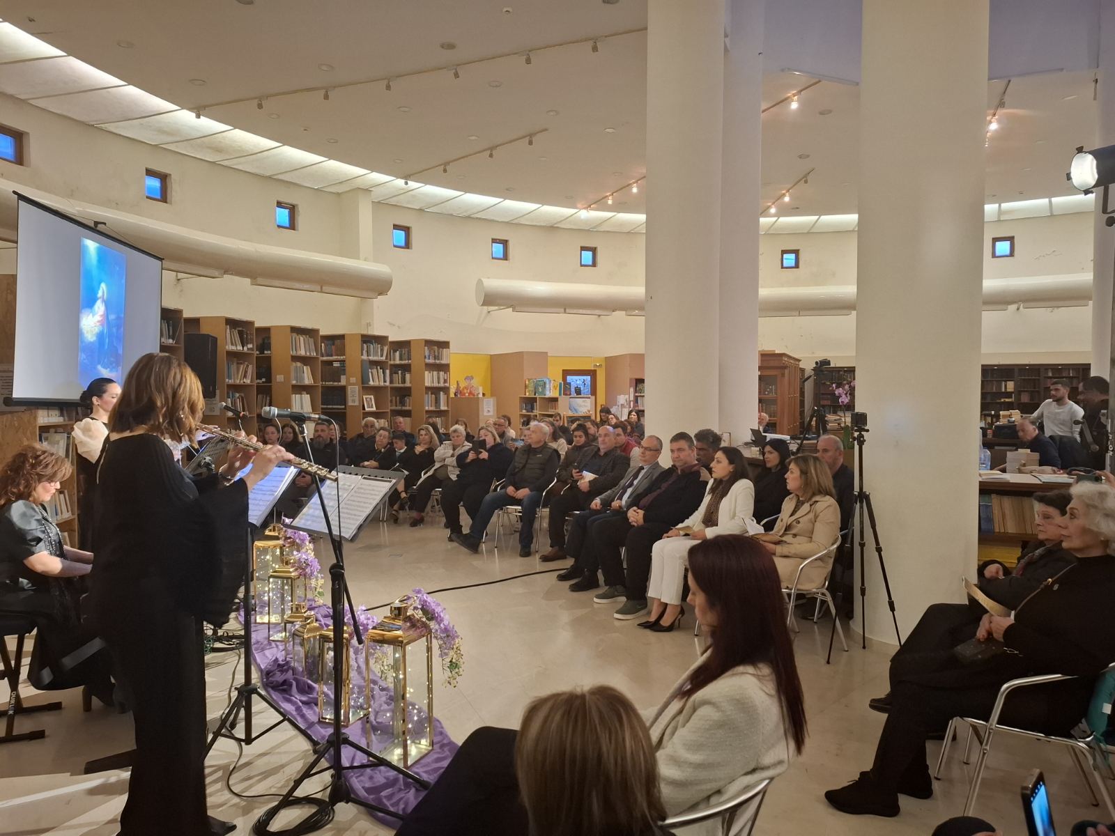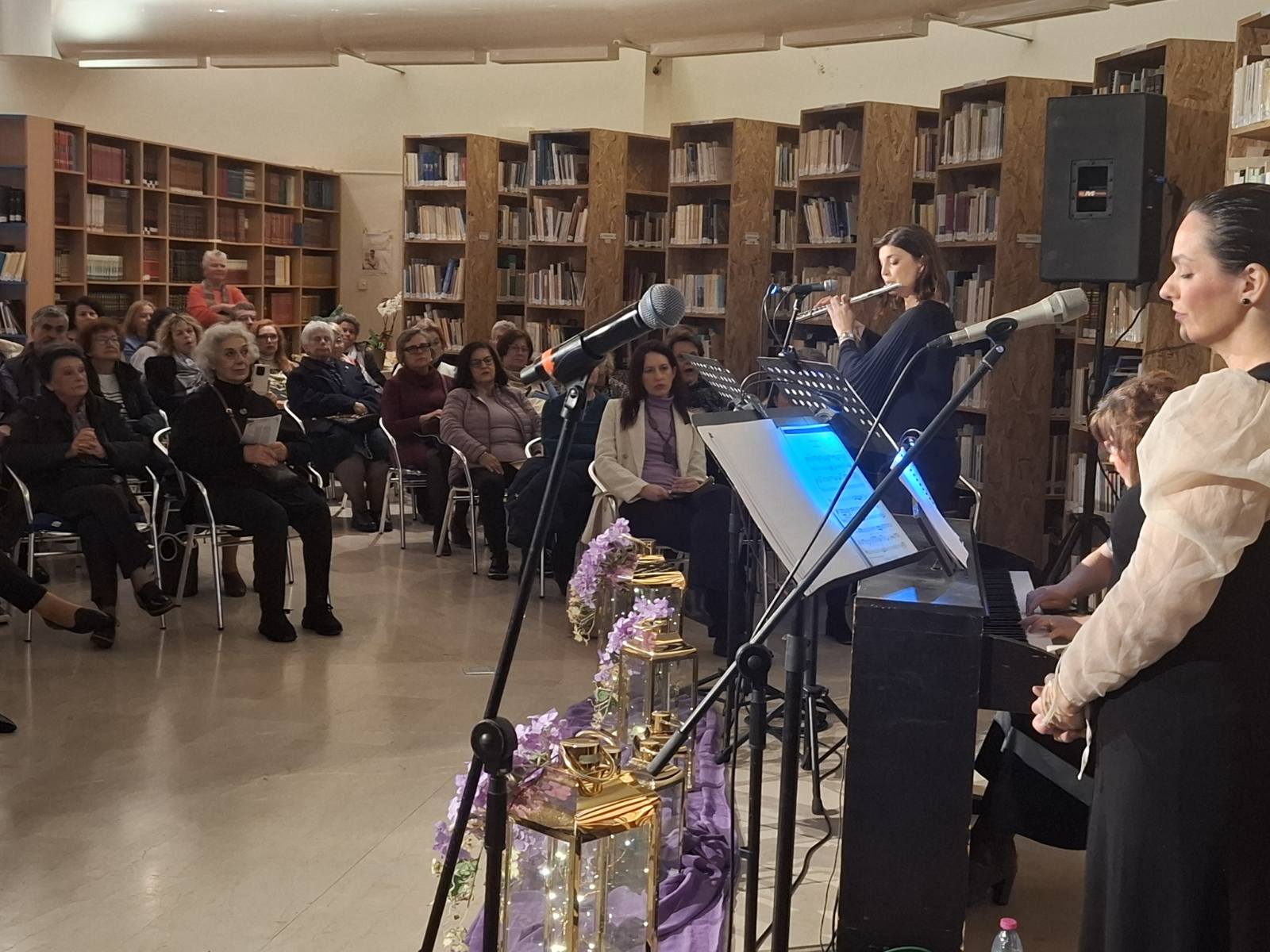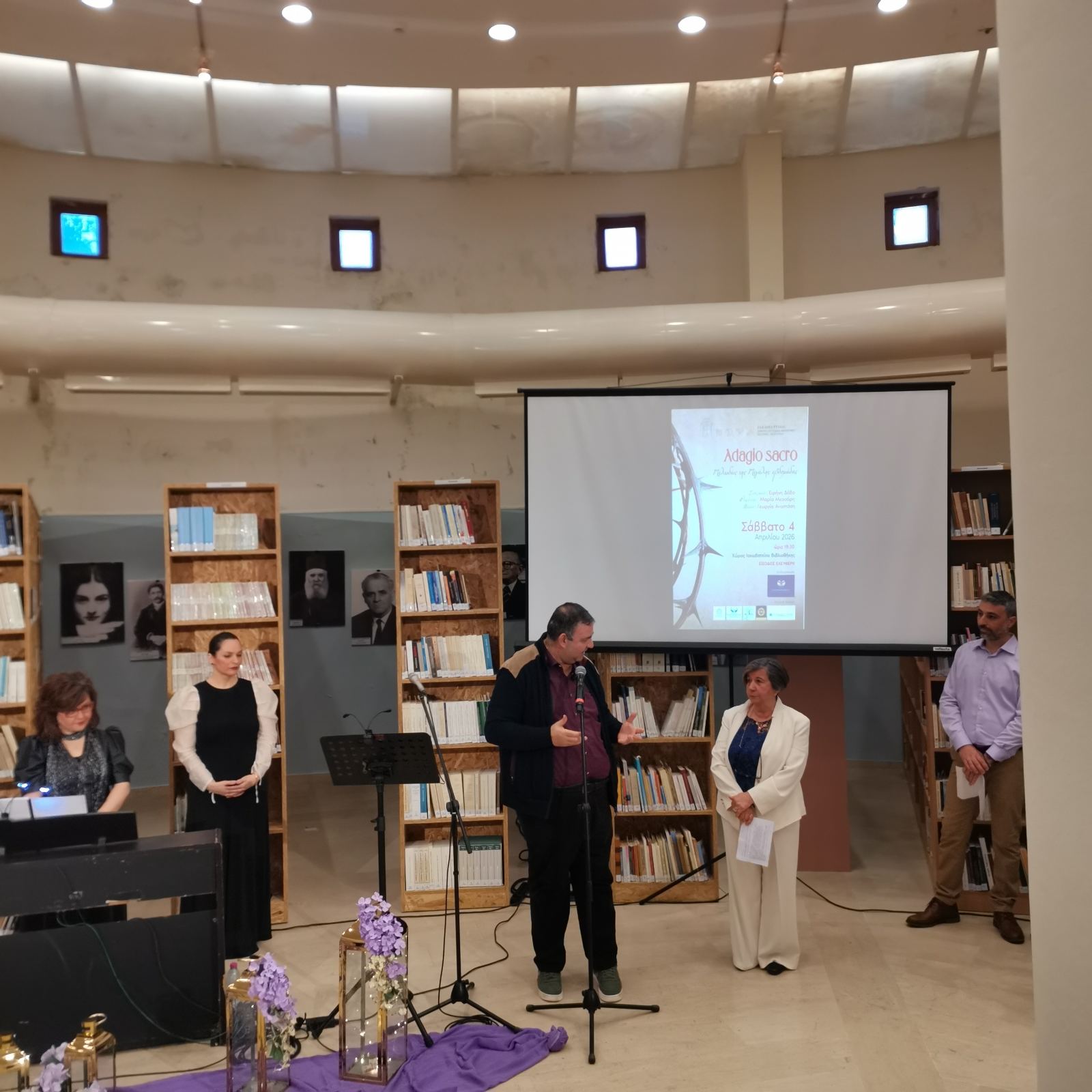 Το περιβάλλον της βιβλιοθήκης, διακοσμημένο σύμφωνα με το πνεύμα της Μεγάλης Εβδομάδας, ήταν καταπληκτικό και απόλυτα συνδυασμένο με το μουσικό δρώμενο.