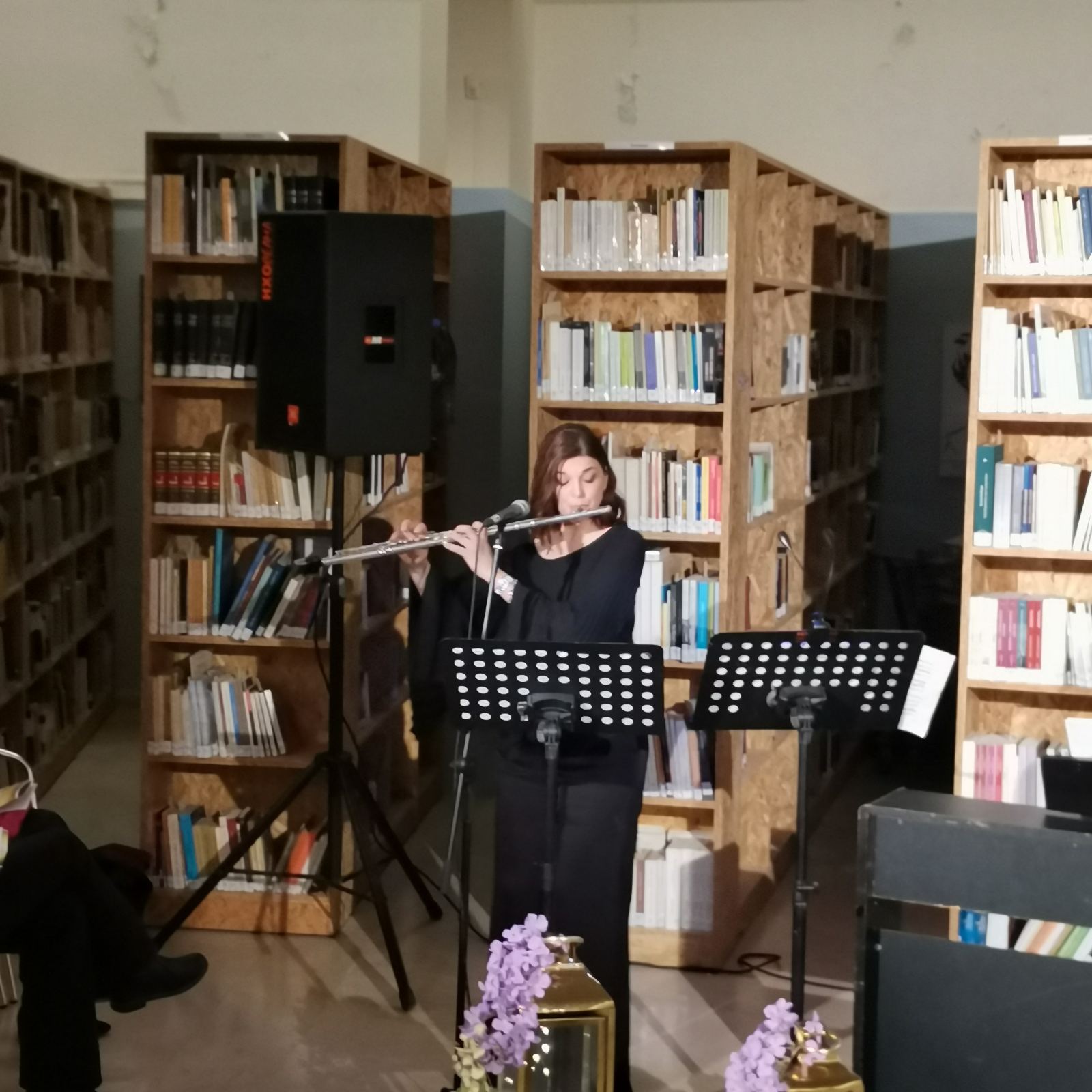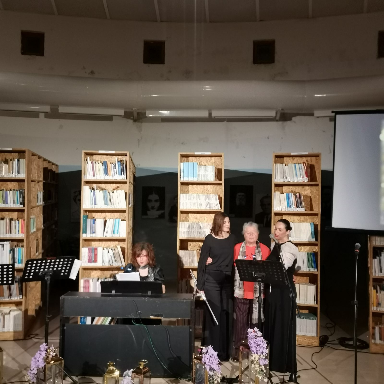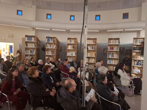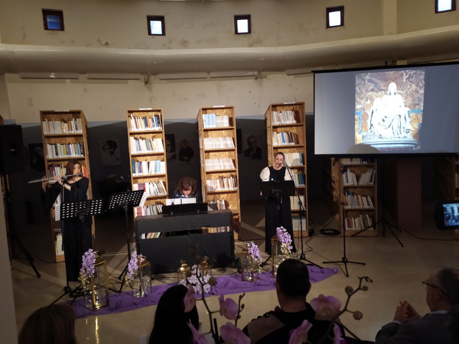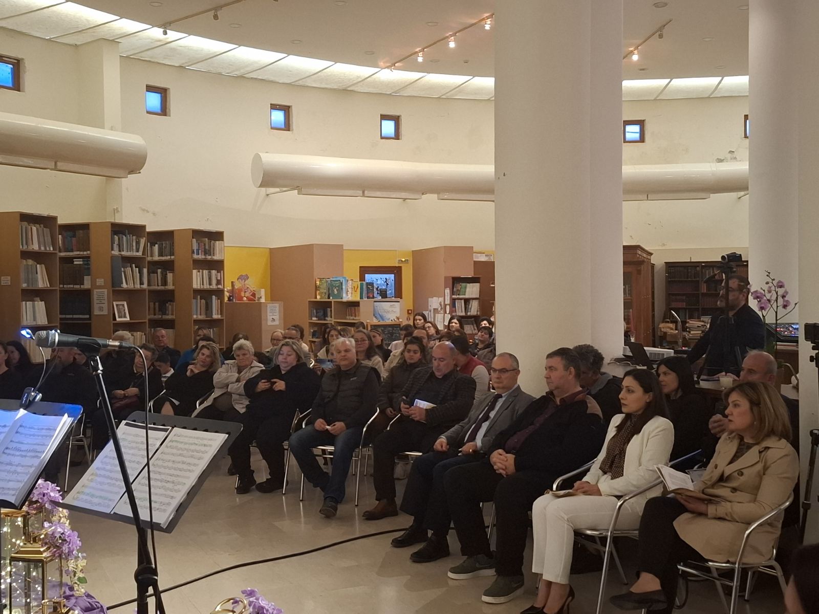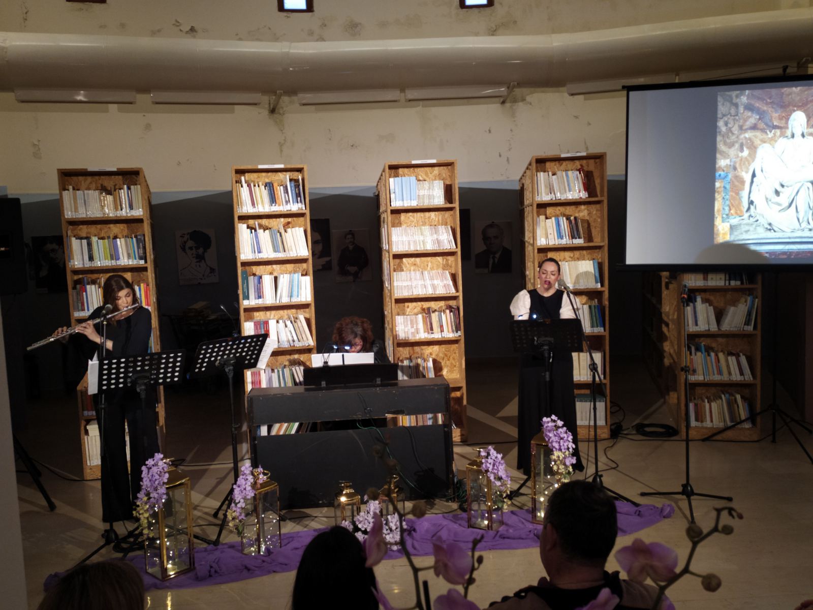 Το περιβάλλον της βιβλιοθήκης, διακοσμημένο σύμφωνα με το πνεύμα της Μεγάλης Εβδομάδας, ήταν καταπληκτικό και απόλυτα συνδυασμένο με το μουσικό δρώμενο.