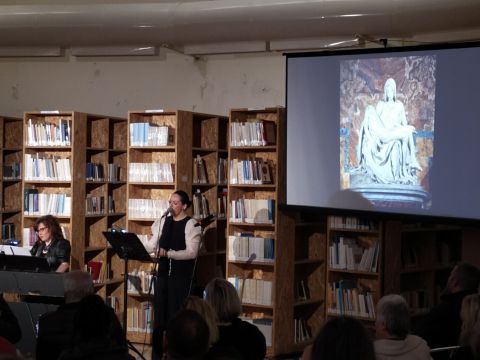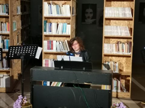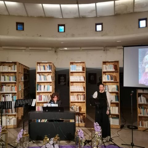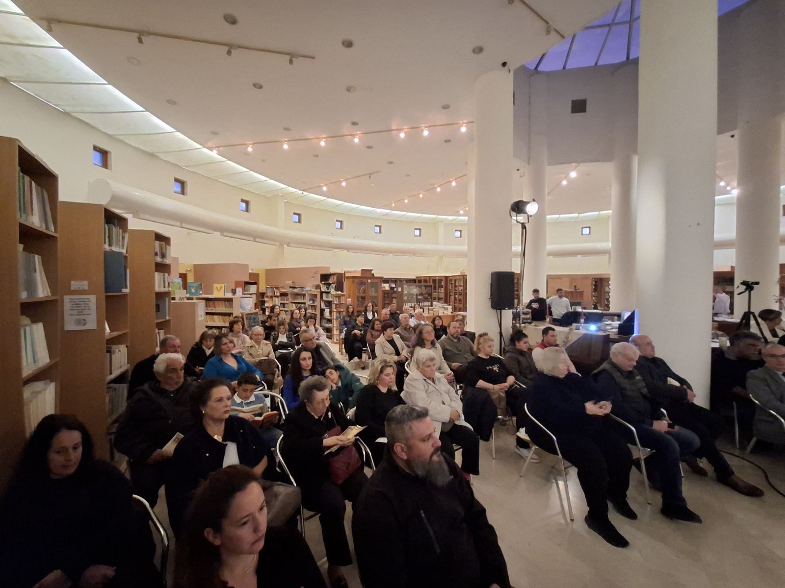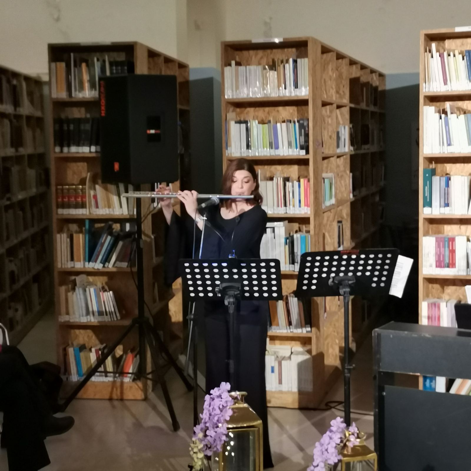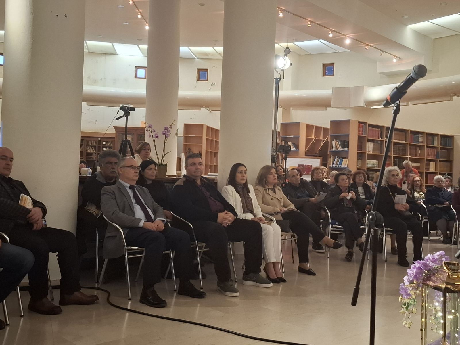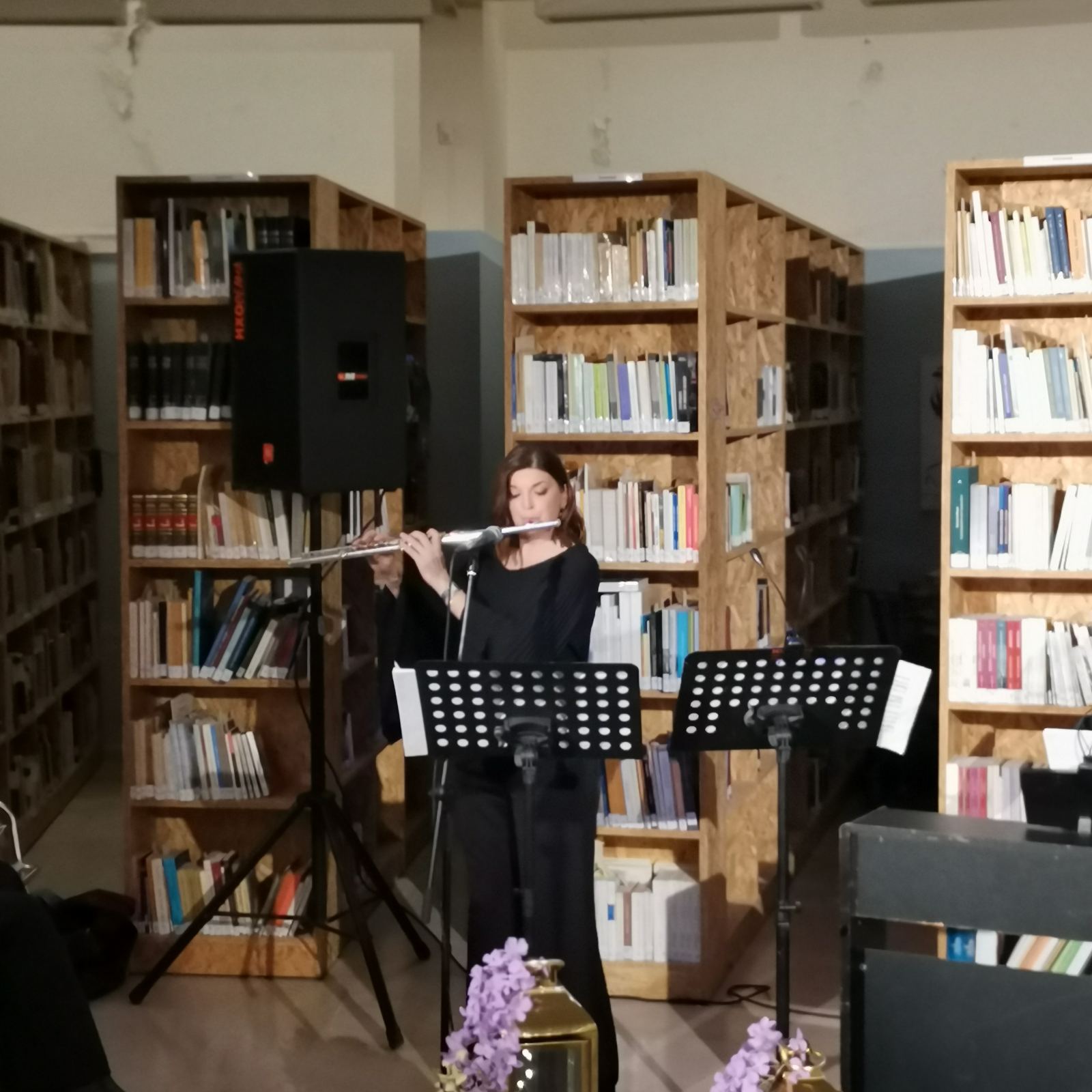Το περιβάλλον της βιβλιοθήκης, διακοσμημένο σύμφωνα με το πνεύμα της Μεγάλης Εβδομάδας, ήταν καταπληκτικό και απόλυτα συνδυασμένο με το μουσικό δρώμενο.