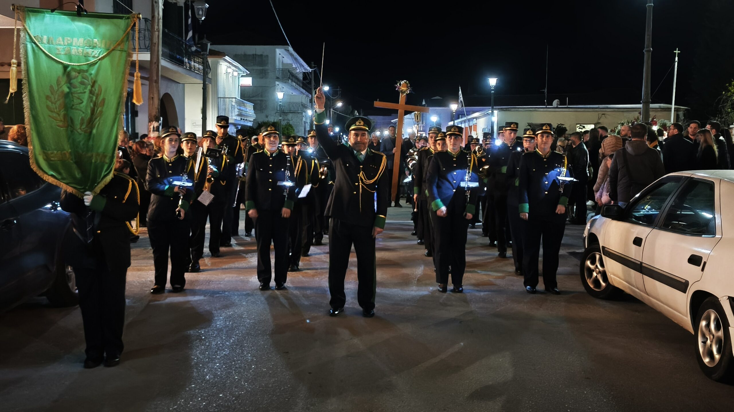 Με τη συνοδεία της Φιλαρμονικής Σάμης «Θέμος Αμούργης» υπό τον αρχιμουσικό Γεράσιμο Γεωργόπουλο, η περιφορά ξεκίνησε γύρω στις 21:30, με το πλήθος να ακολουθεί σιωπηλά δημιουργώντας μία εικόνα που συνδύαζε τη θλίψη της ημέρας με τη συλλογική πίστη και την προσμονή της Ανάστασης του Κυρίου μας. Στην δε κεντρική πλατεία επί της παραλιακής λεωφόρου, ο π. Βασίλειος Φλαμιάτος, τέλεσε την καθιερωμένη δέηση.