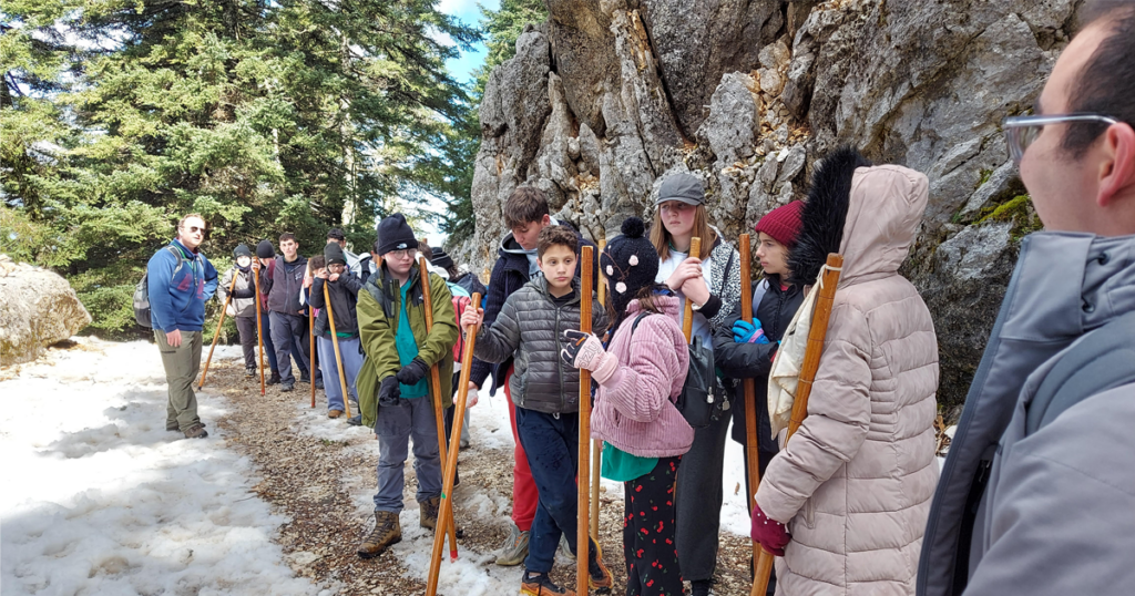 Στη συνέχεια ξεκίνησε η πορεία προς την κορυφή του Αίνου. Κατά τη διάρκεια της ανάβασης, τα παιδιά είχαν την ευκαιρία να απολαύσουν τη μοναδική θέα, αλλά και να παίξουν με τα χιόνια που υπήρχαν ακόμη στο βουνό, ζώντας μια αυθεντική προσκοπική εμπειρία.