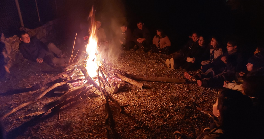 Το βράδυ της Κυριακής, οι Ομάδες πραγματοποίησαν μια εκπαιδευτική δράση παρατήρησης αστερισμών, όπου τα παιδιά γνώρισαν τον νυχτερινό ουρανό, έμαθαν να εντοπίζουν βασικούς αστερισμούς και ανακάλυψαν τον ρόλο τους στον προσανατολισμό. Αμέσως μετά ακολούθησε η προσκοπική πυρά, μια από τις πιο χαρακτηριστικές στιγμές του Προσκοπισμού. Γύρω από τη φωτιά, τα παιδιά μοιράστηκαν τραγούδια, ιστορίες και στιγμές συντροφικότητας, ενισχύοντας ακόμη περισσότερο το δέσιμο και το πνεύμα συνεργασίας μεταξύ των δύο Ομάδων.