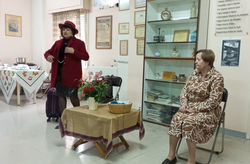 Στη συνέχεια μέλη της θεατρικής ομάδας του συλλόγου μας με επικεφαλής τη θεατρική συγγραφέα και ηθοποιό κ. Πέντζη Διονυσοπούλου παρουσίασαν το θεατρικό έργο της «ΤΟ ΣΑΡΑΚΙ ΤΗΣ ΔΡΟΣΟΥΛΑΣ» που καθήλωσε τους θεατές και σκόρπισε άφθονο γέλιο με τα «καμώματα και παθήματα» της Μέλπως (την υποδύθηκε η κ. Πέντζη) και της Δροσούλας (την υποδύθηκε η κ. Φωτεινή Κουμπούνη).