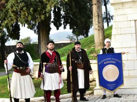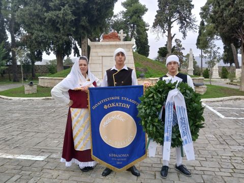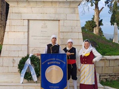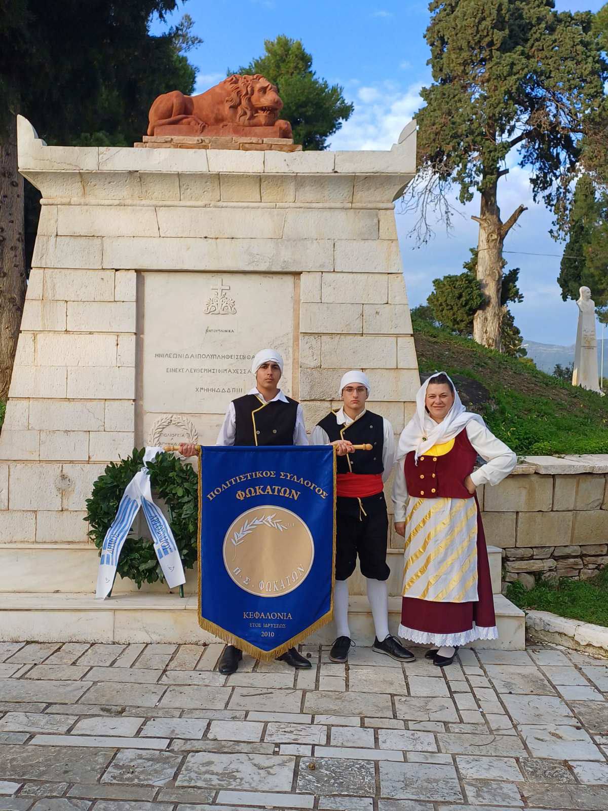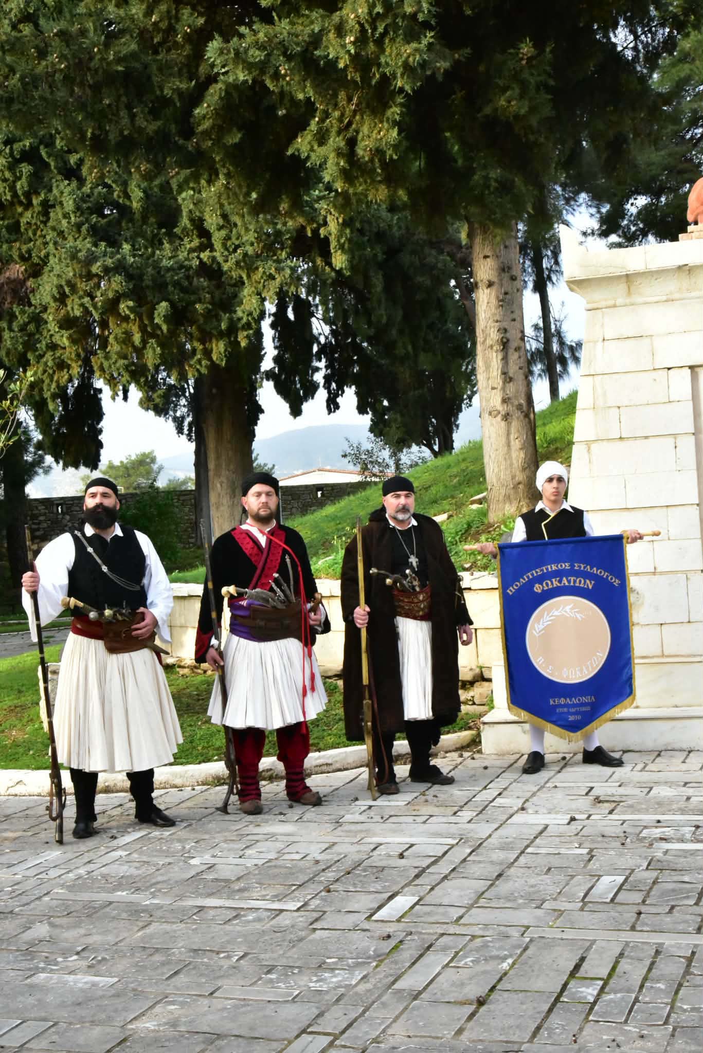 Στον ιστορικό Κήπο των Ηρώων πραγματοποιήθηκε κατάθεση στεφάνων από τον Δήμαρχο Αργοστολίου και τετραμελή αποστολή από τον Π.Σ. Φωκάτων, τιμώντας τους ήρωες της Εξόδου, που με τη θυσία τους φώτισαν τον αγώνα για την ελευθερία.