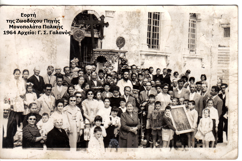 είναι στο χωριό Μονοπολάτα Παλικής και τα δύο μέρη της νοτίου πλαγιάς του Μεγάλου Βουνού, του Αίνου μας: Η Ζωοδόχος Πηγή στο Ξενόπουλο και η «Πηγή» στα Αργίνια. Είναι εμφανές ότι οι δυο τελευταίες πανηγύρεις καθιερώθηκαν σ’ αυτά τα μέρη, λόγω που υπάρχουν από παλιά πηγές νερού ως δυνατά σταλάγματα από τον Αίνο. Στα Μονοπολάτα στο ναό της Αγίας Παρασκευής εορτάζει
